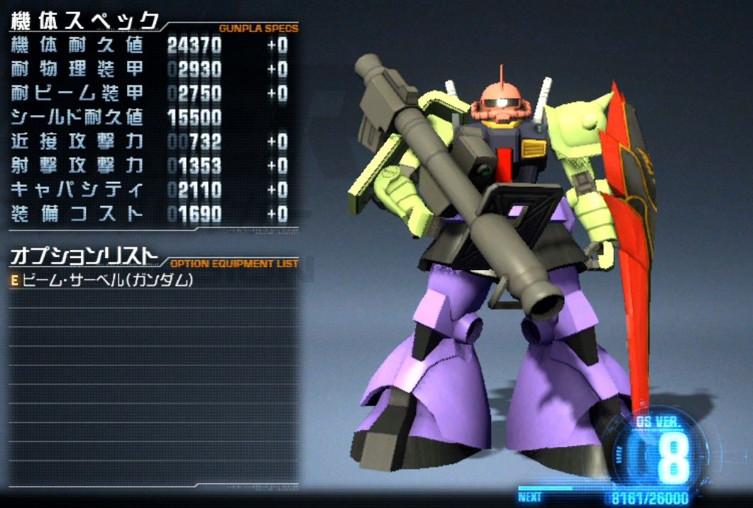 で、だいたいこういうガンダムのゲームだと機体の強化っていうのは
