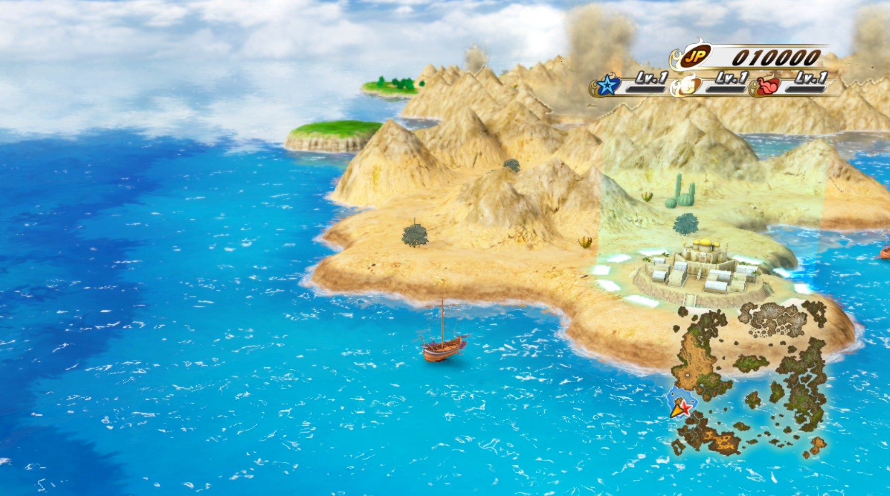 ストーリーモードである「Jアドベンチャー」は船を操作して各ステージに移動します