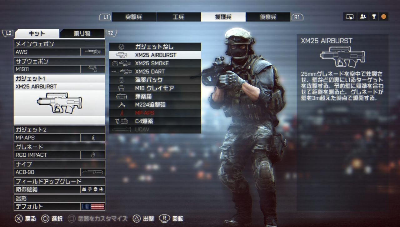 援護兵のガジェットはけっこう豊富で対ビークルだったり対スナイパーだったりもできるので