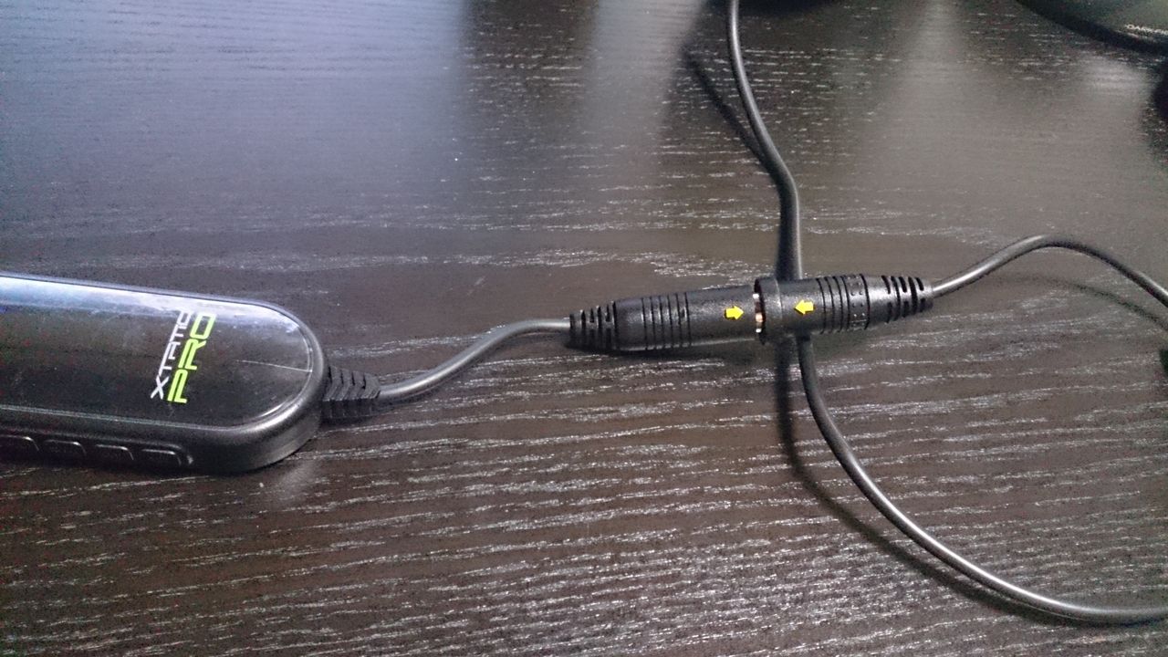ヘッドフォンから出ているゲーブルとリモコンのケーブルを繋げます