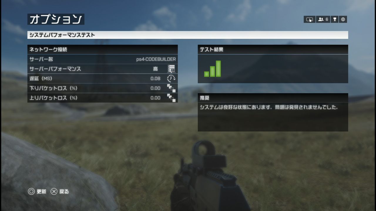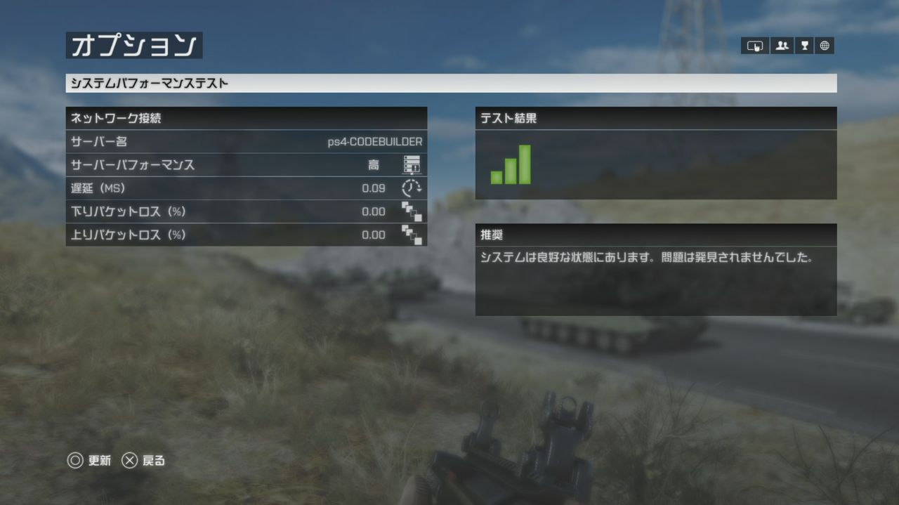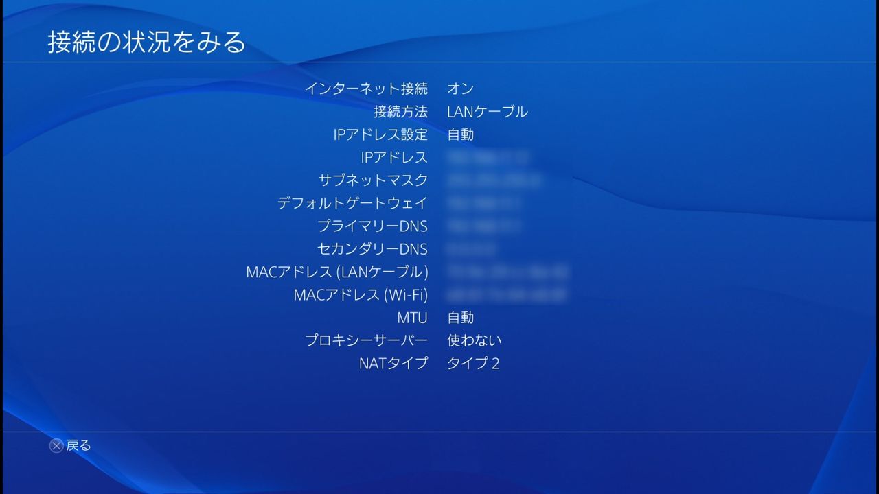 まずPS4 一台だけ接続した状態でネットワークテストをしてみます