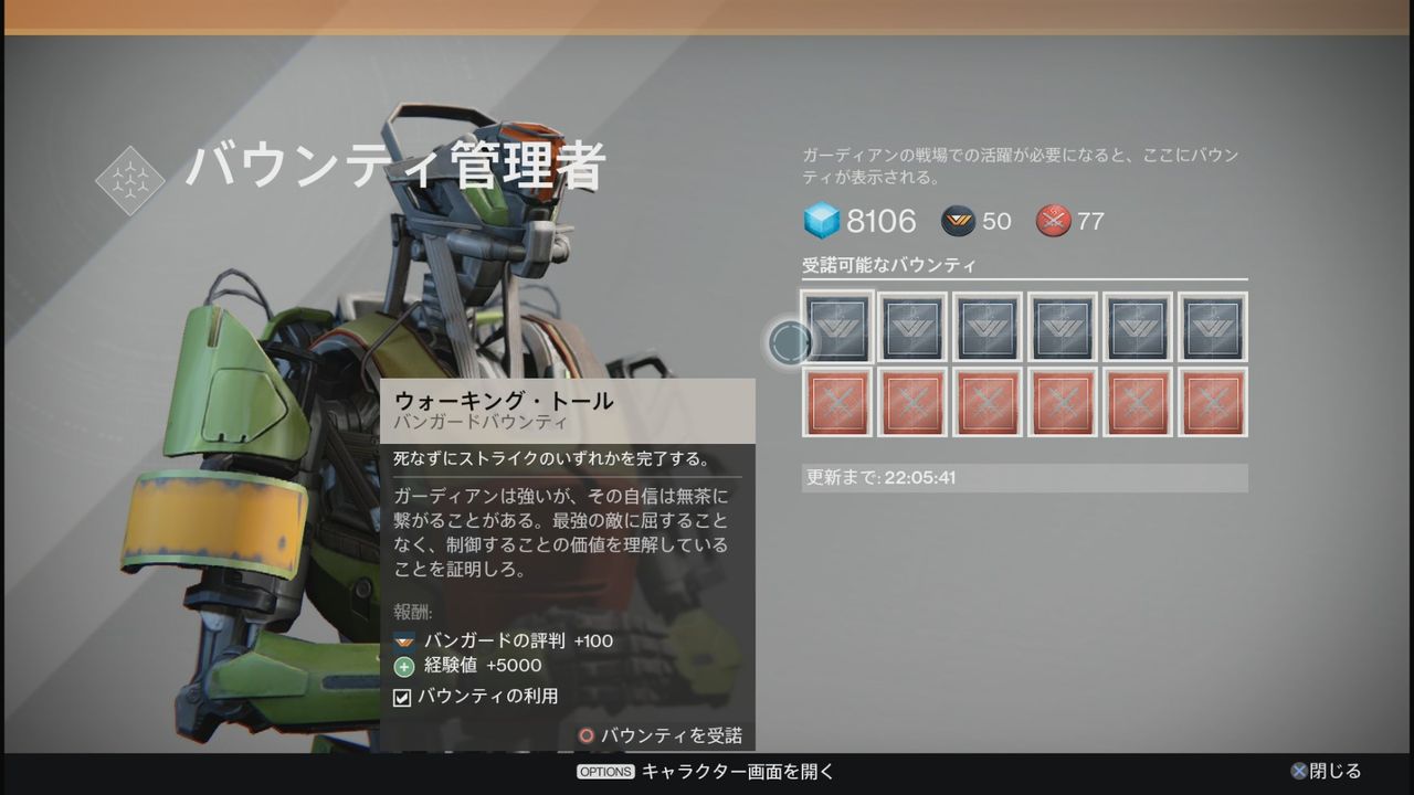 17時55分にログインして18時にバウンティを見ると一部翌日のバウンティが更新されます