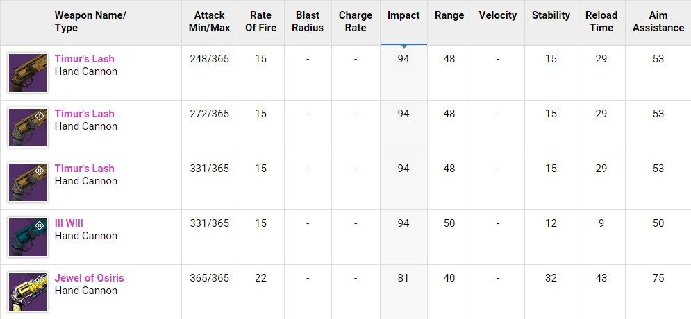 http://db.planetdestiny.com/items/weapons/primary/handcannon?sort=impact&desc=1&tier=8