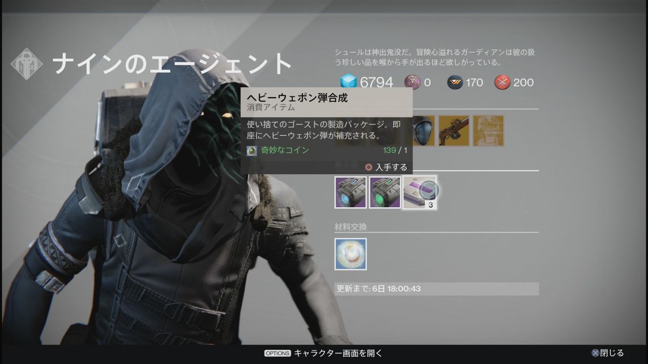 ヘビーウェポン弾は各ファンクションの評価を上げるのに使えるので余裕のある人は買えるだけ買っても良いと思います