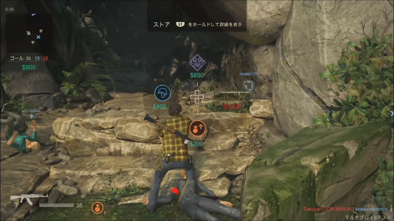 CoDなんかのFPSではキルストリークなどが主流で連続キル数によって強力なアイテムを使えるようになりますがアンチャーテッドでは累計額なので連続キルだけではなくトレジャーなどで貯めた現金が使えます