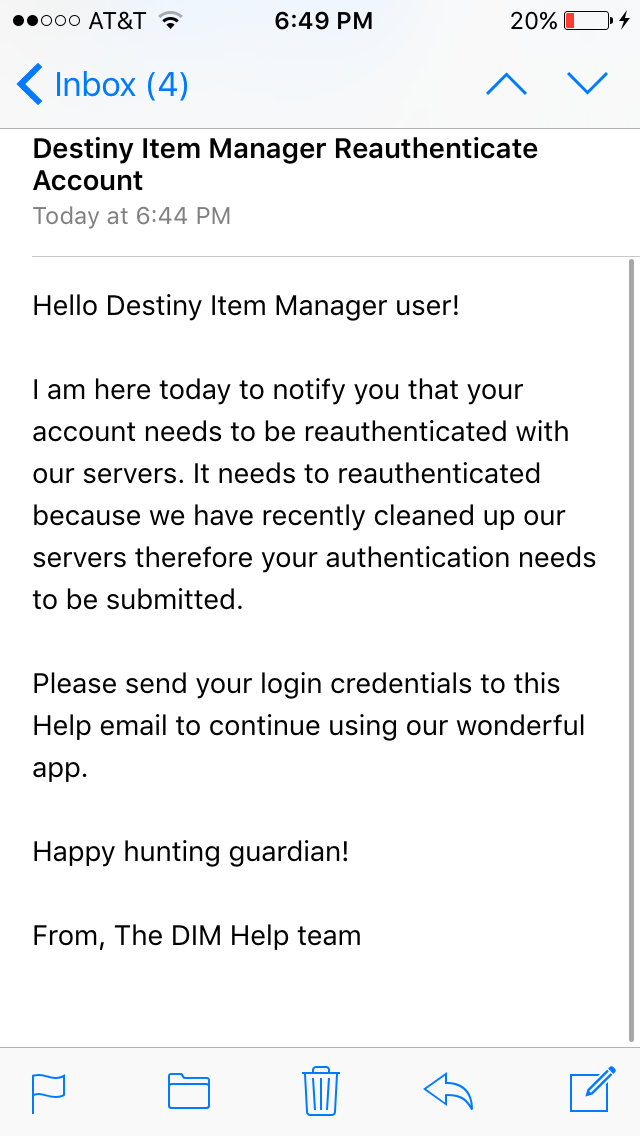 フォーラムでDIMチームになりすますメールが届いたとの報告があったので注意しましょう