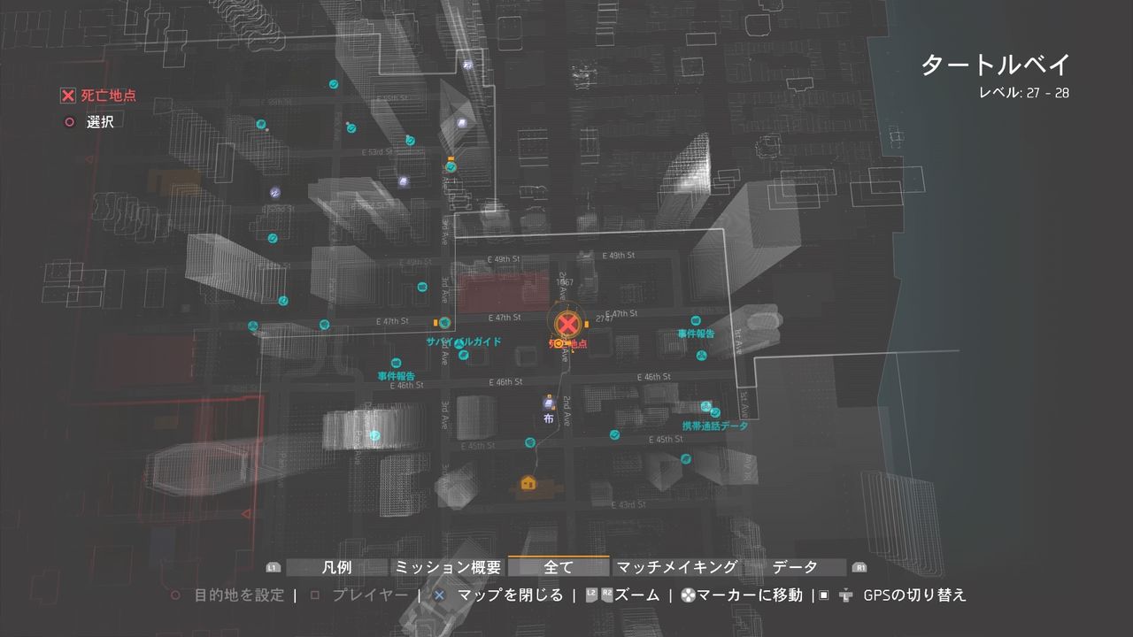 【Division(ディビジョン)】DZの外に居る全ネームドの位置 2016年03月20日 カテゴリ:The Division(ディビジョン) Follow @maruhashi084 1.Sorretto ~クリントン~ 2.Erskine~ハドソン・ヤード~ 3.Belzer~テンダーロイン~ 4.Riot~フラットアイアン~ 5.Chains~スタイベサント~ 6.Cpl. Dorsman~マレー・ヒル~ 07.Fumes~ガーメント~ ※地下鉄の構内に居ます08.Sgt. Jacks~タートルベイ~ 09.Bullet King~タイムズスクエア~ 皆のアイドル編集:a13ディビジョン「初回生産限定」特典DLCハズマット装備パック同梱&「数量限定特典」クローズドベータテストPS4版参加コード付 [Video Game] タグ :#ディビジョン#Division 「The Division(ディビジョン)」カテゴリの最新記事 コメント コメント一覧 (6) 1. 名無しのゲーマーさん 2016年03月20日 16:09 ストリングスは? 2. 名無しのゲーマーさん 2016年03月20日 18:17 まるはしさん情報ありがとうございます 3. 名無しのゲーマーさん 2016年03月21日 01:53 この情報は非常に役にたったよ 御苦労様でしたm(__)m 5. 名無しのゲーマーさん 2016年03月21日 11:37 これは素晴らしい! キングさんが天に召されているので活用させて頂きます 6. 名無しのゲーマーさん 2016年10月28日 11:26 まさかのキング含むDZ外野良ネームド復活&リスポーンとか誰が予想出来ただろうか 7. 名無しのゲーマーさん 2016年11月15日 00:17 ネームド14人いるんだが・・・ コメントする コメントフォーム 名前 コメント 記事の評価 リセット リセット 顔 星 情報を記憶 コメントを投稿する