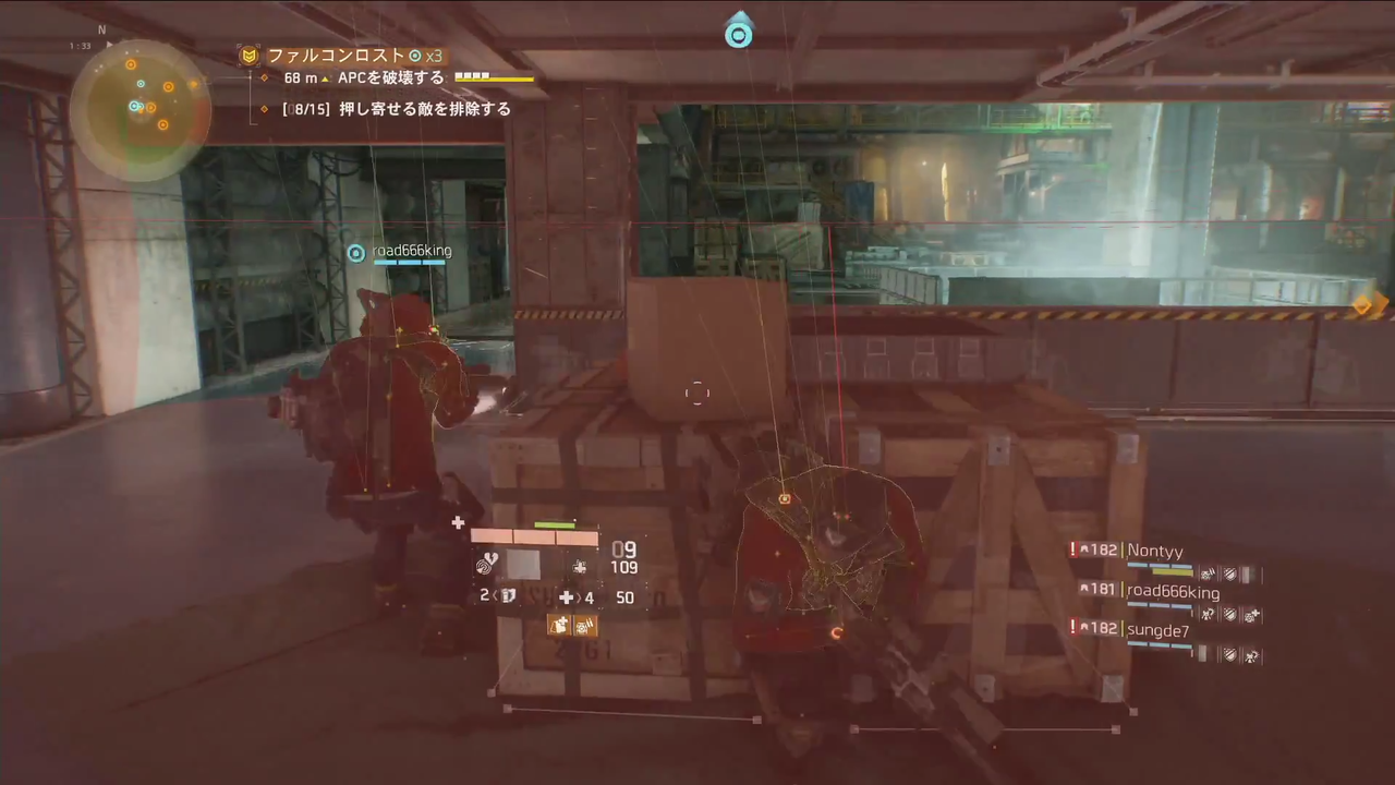 爆撃フェーズは地下の弾薬補給箱なら突っ立って居ても爆撃の赤い範囲に入らない。