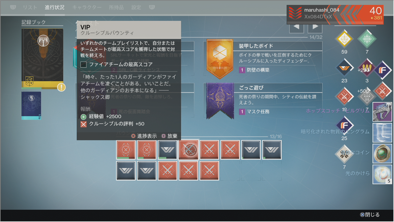 今週の週間バウンティはこの『栄光を狩る者』で恐らく来週(明日)に新しいバウンティが来ると思われます