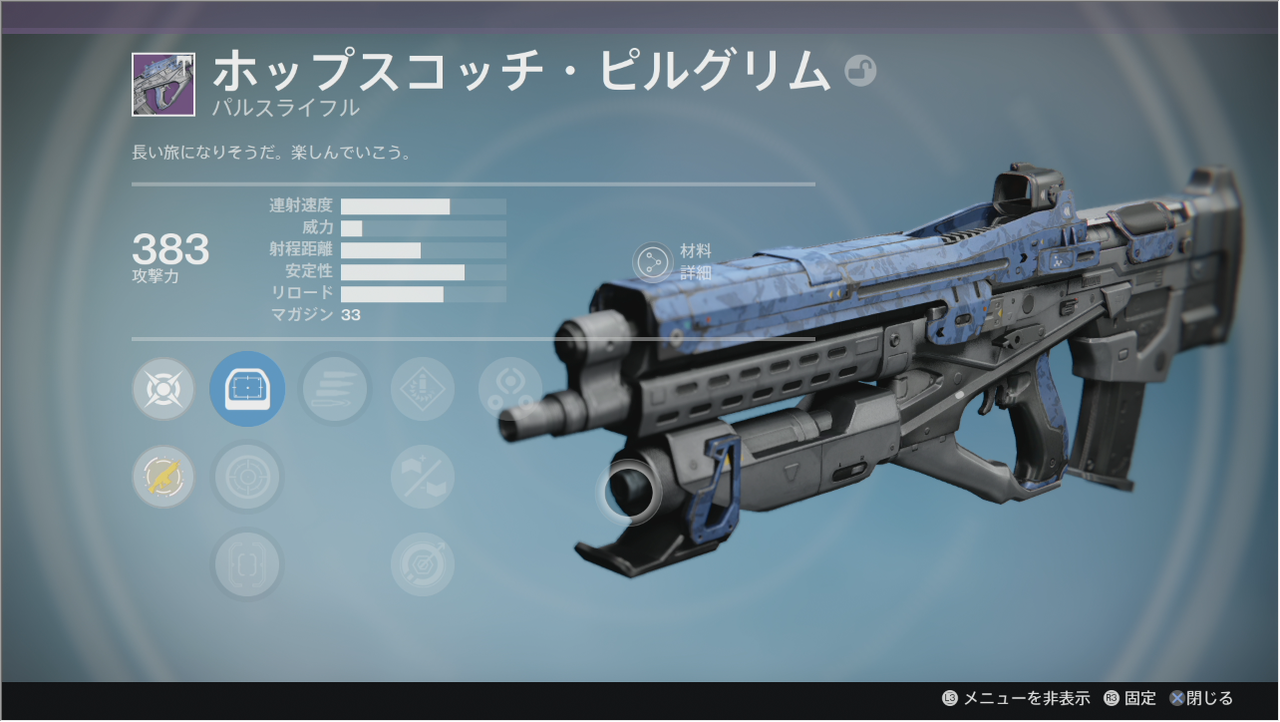 今回ドロップしたのは2年目の愛用銃光383のホップスコッチピルグリムが出ました