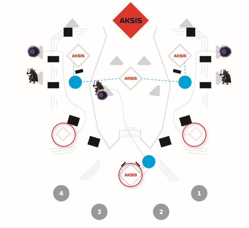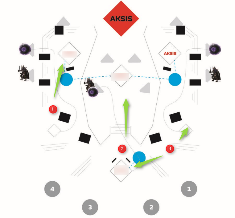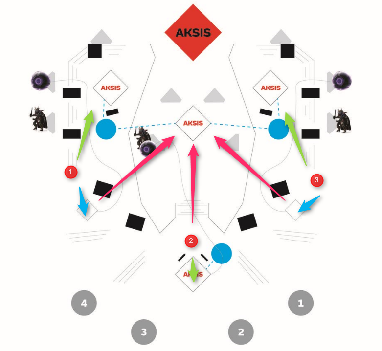 アクシスが右にから他の場所へ移動する場合のみなぎる力立ち位置