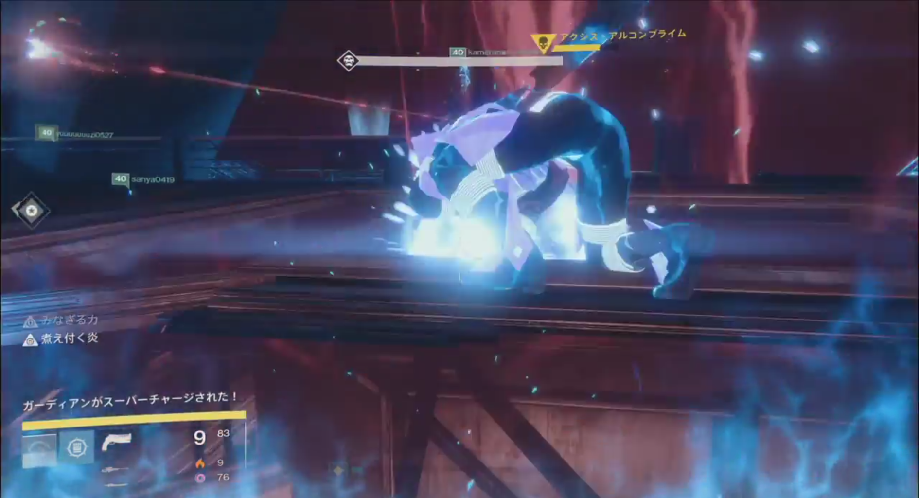 この2発分を当ててしまうとアクシスはテレポートするので声がけしてシールドが剥げるタイミングを伝えるようにしました