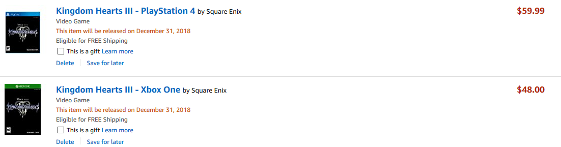 現在、アメリカのAmazonでXboxOne版『キングダムハーツ3』が発売日まだ決まってないのに