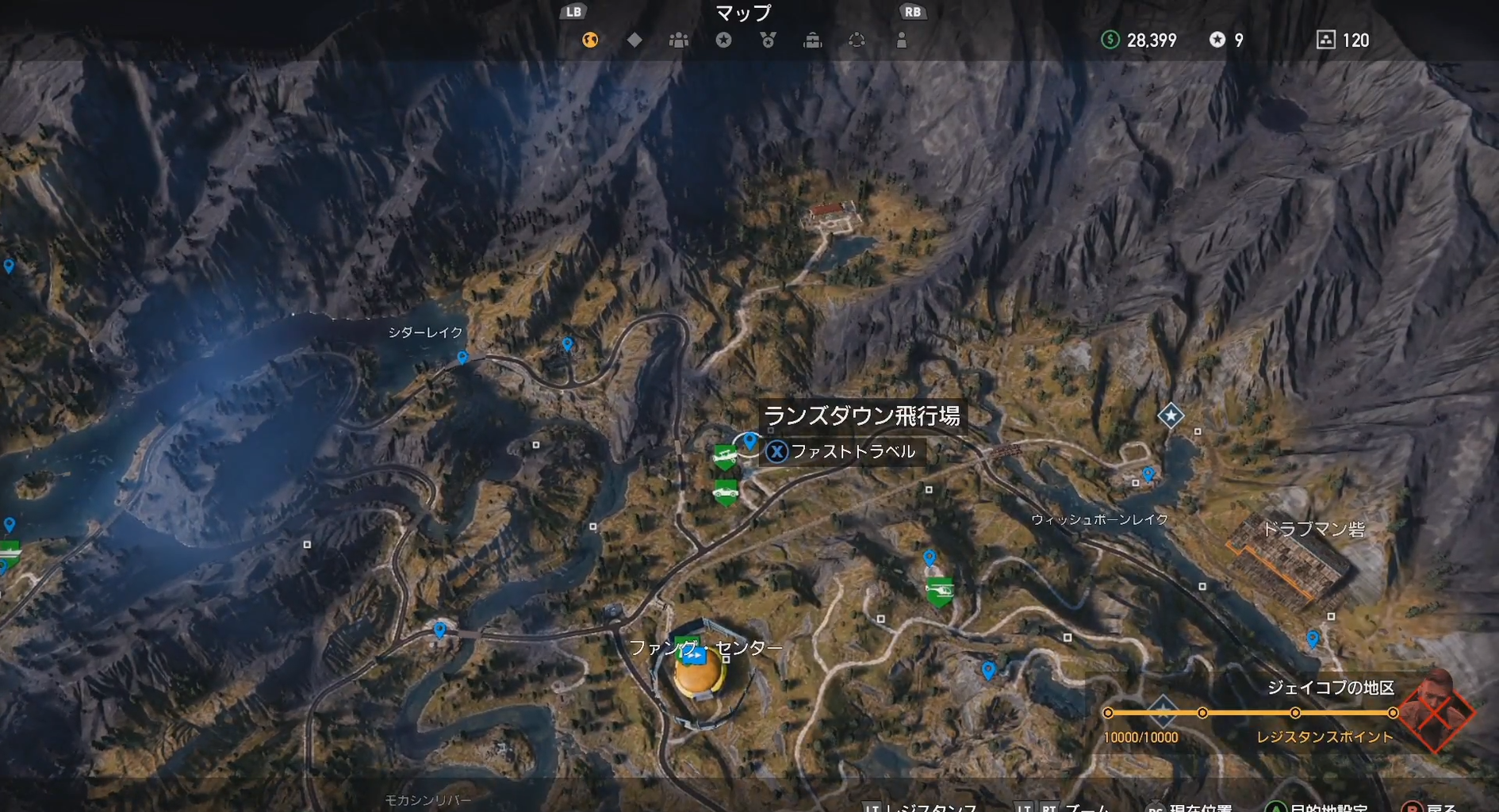 場所は北のジェイコブの地区ホワイトテイルマウンテンのファングセンターの更に北側「ランズダウン飛行場」。ここは格納庫とガレージが隣接しているので取得しやすいです。