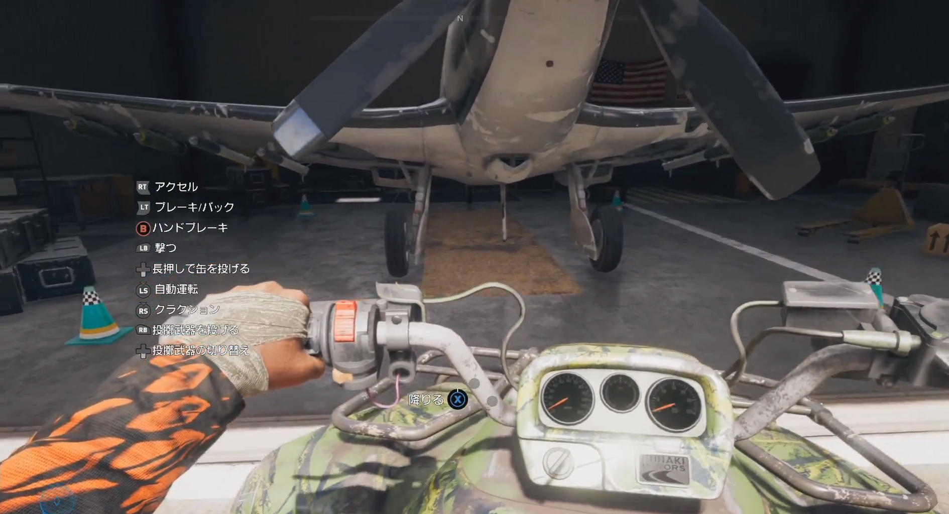 この格納庫は入口が閉まっていて開放するには上から中に入る必要があります。恐らく普通は近くにある鉄塔からウイングダイブで中に入ると思うんですが、自分は上手く行かずヘリで屋上へ行き解放した記憶があります。