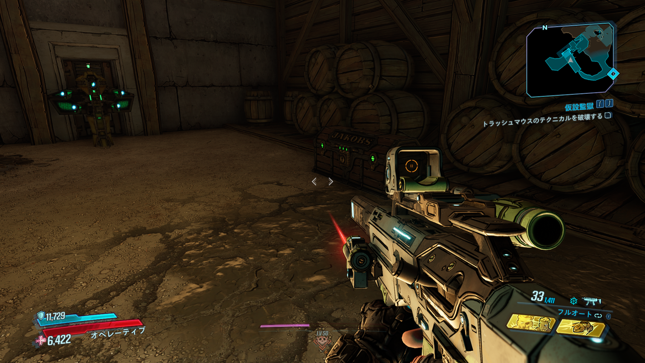 宝箱を開けてメニューに戻りゲームを始めれば宝箱はスポーンしている。これをひたすら繰り返すだけである。筆者が確認したところ20~30回に1度レジェンダリーが出るかどうかなのでボスを周回できるプレイヤーにはおすすめできるファーミングではない。ドロップするのは銃だけでありグレネードやクラスMOD、アーティファクトなどは恐らくドロップしない。レベル50になりたてで効率良くボスを倒せないのであればここで武器ファーミングをしても良いだろう。