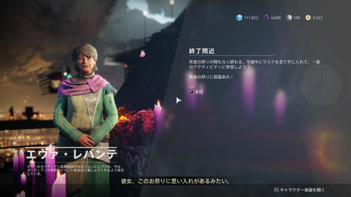 Destiny2: 影の砦のハロウィンイベント「死者の祭り」も最終週となりました。死者の祭りが終わると死者の祭りのアイテムや勝利の道のりも取得できなくなるのでコレクションされている方は今のうちに集めておくと良いでしょう。