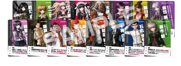 「ダンガンロンパ 希望の学園と絶望の高校生」のキャラクター16名がキャラクターカード化され、自身の勝利条件を変えるなど特殊能力が設定されている。
