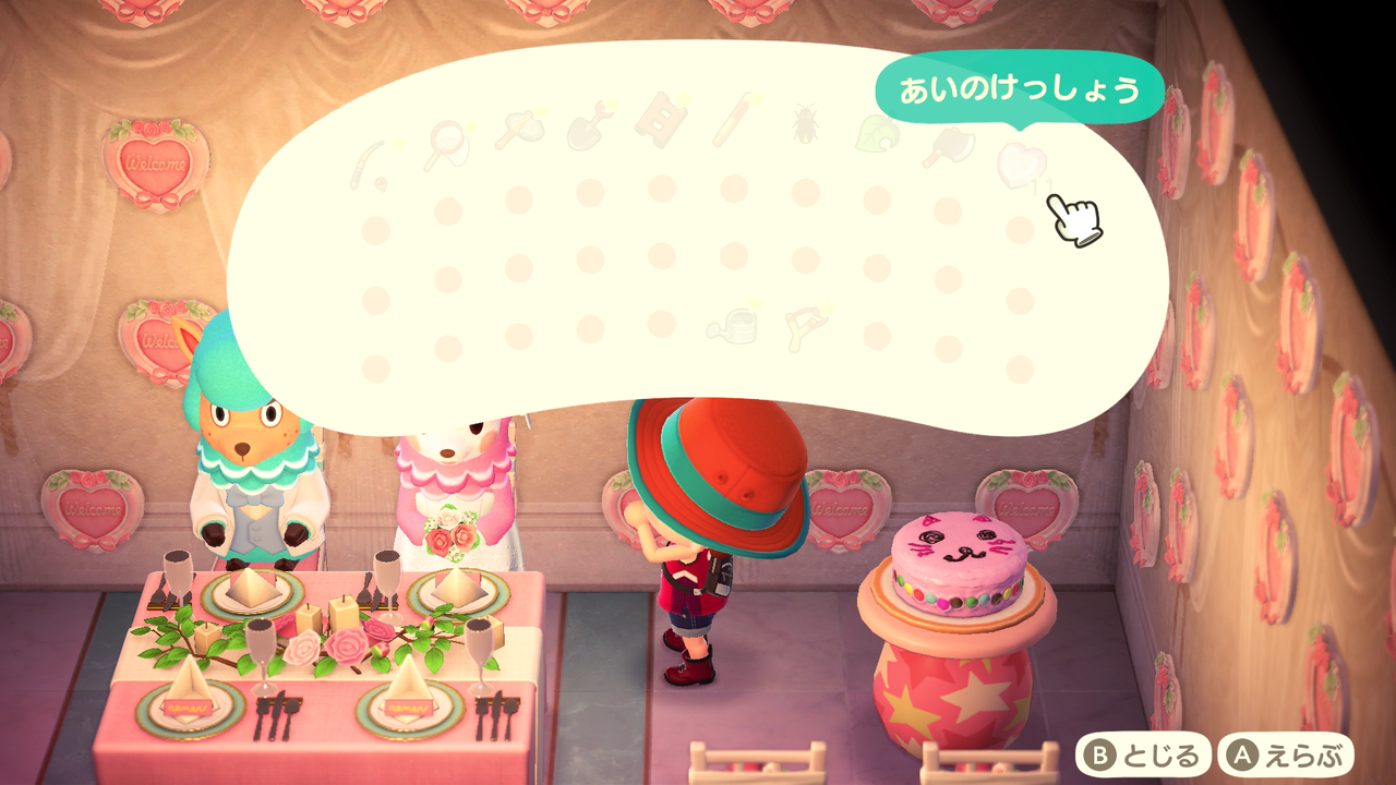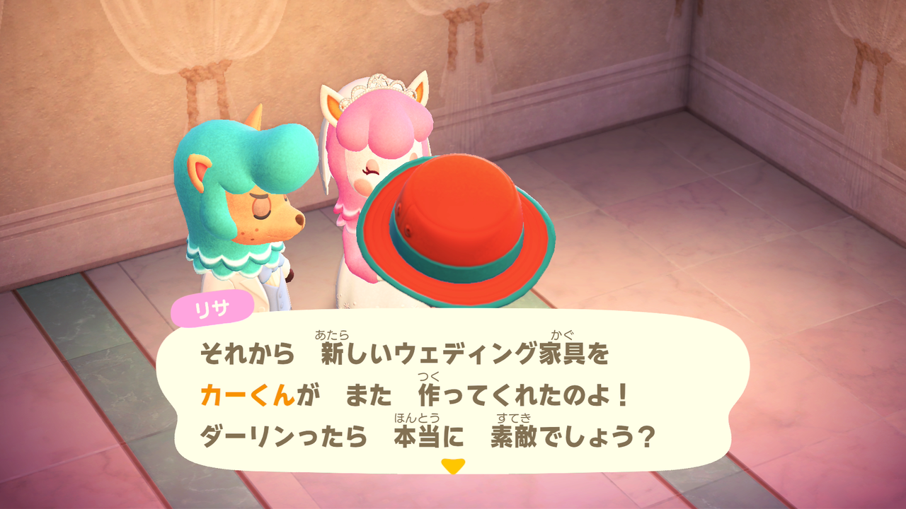 また、カーくんがウェディング家具を作ってくれています。2日目に追加されたものはは以下の3つです。