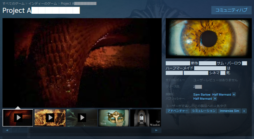 Steamページを見てみると伏せ字だらけで、どんなゲームなのかわからない。