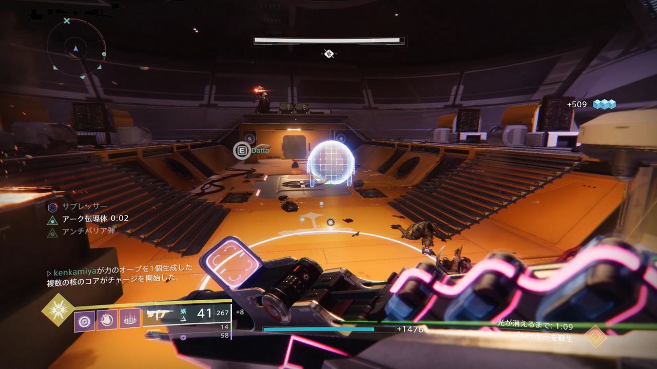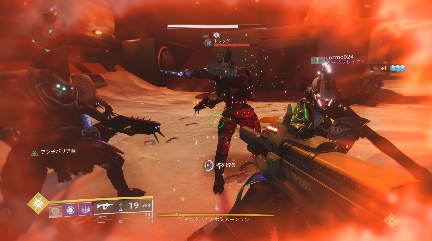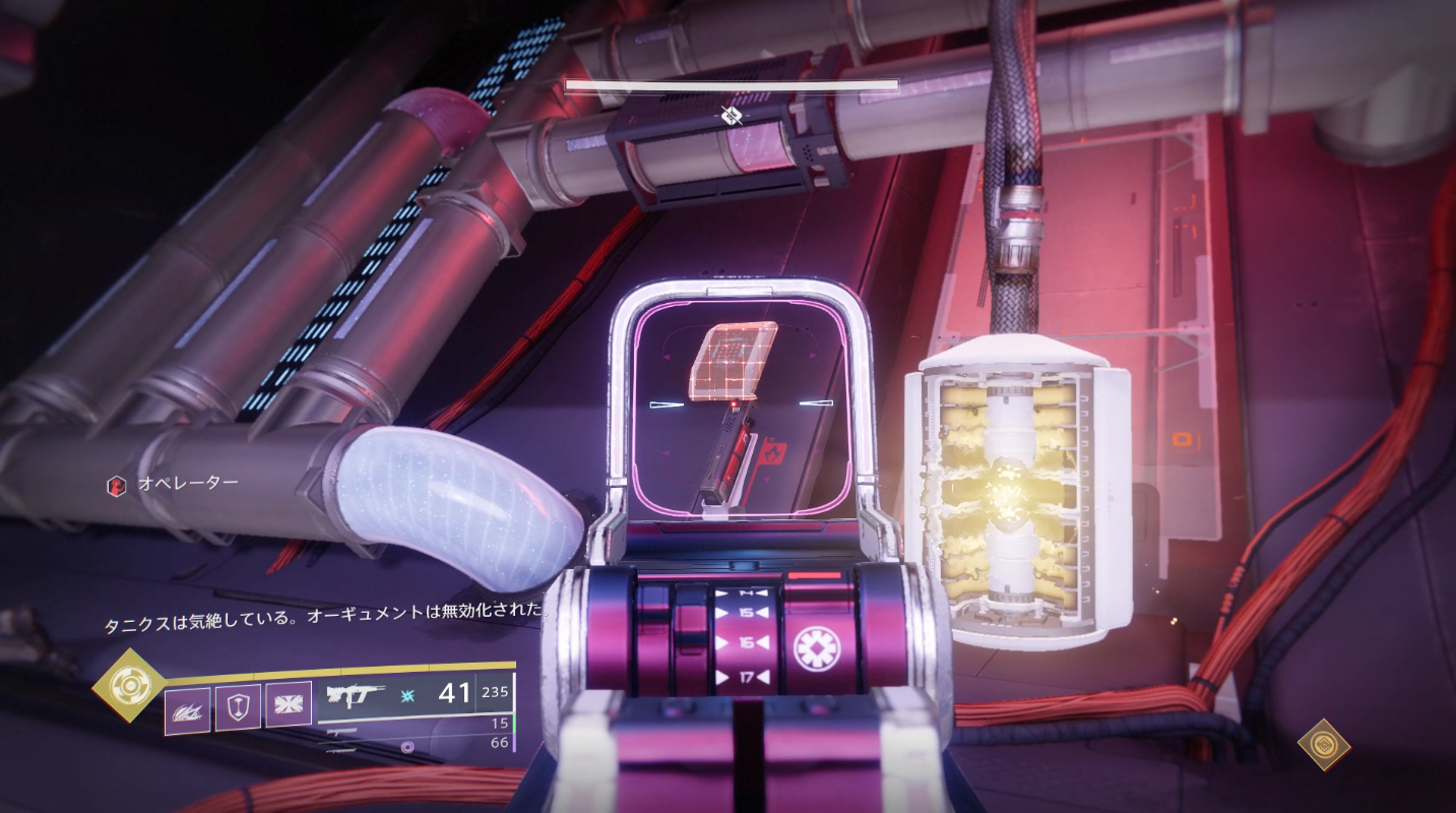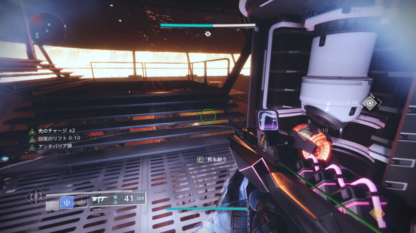 オペレーター、スキャナー、サプレッサーのバフがあります。それぞれバフを持っているバンダルを倒すとドロップします。オペレーターは核ステーションの制御盤を撃つことができ、スキャナーは核を捨てる場所を確認し、サプレッサーは3つあるセキュリティドローン(風船のようなもの)の下からタニクスを撃ち怯ませることができます。