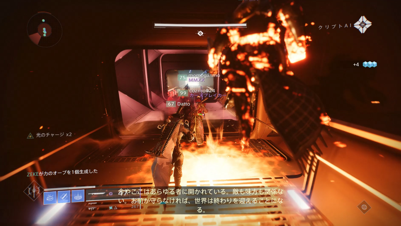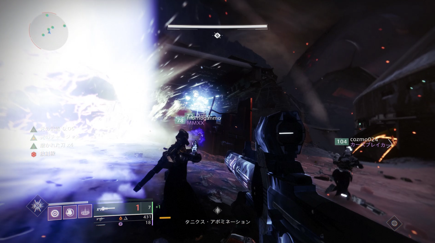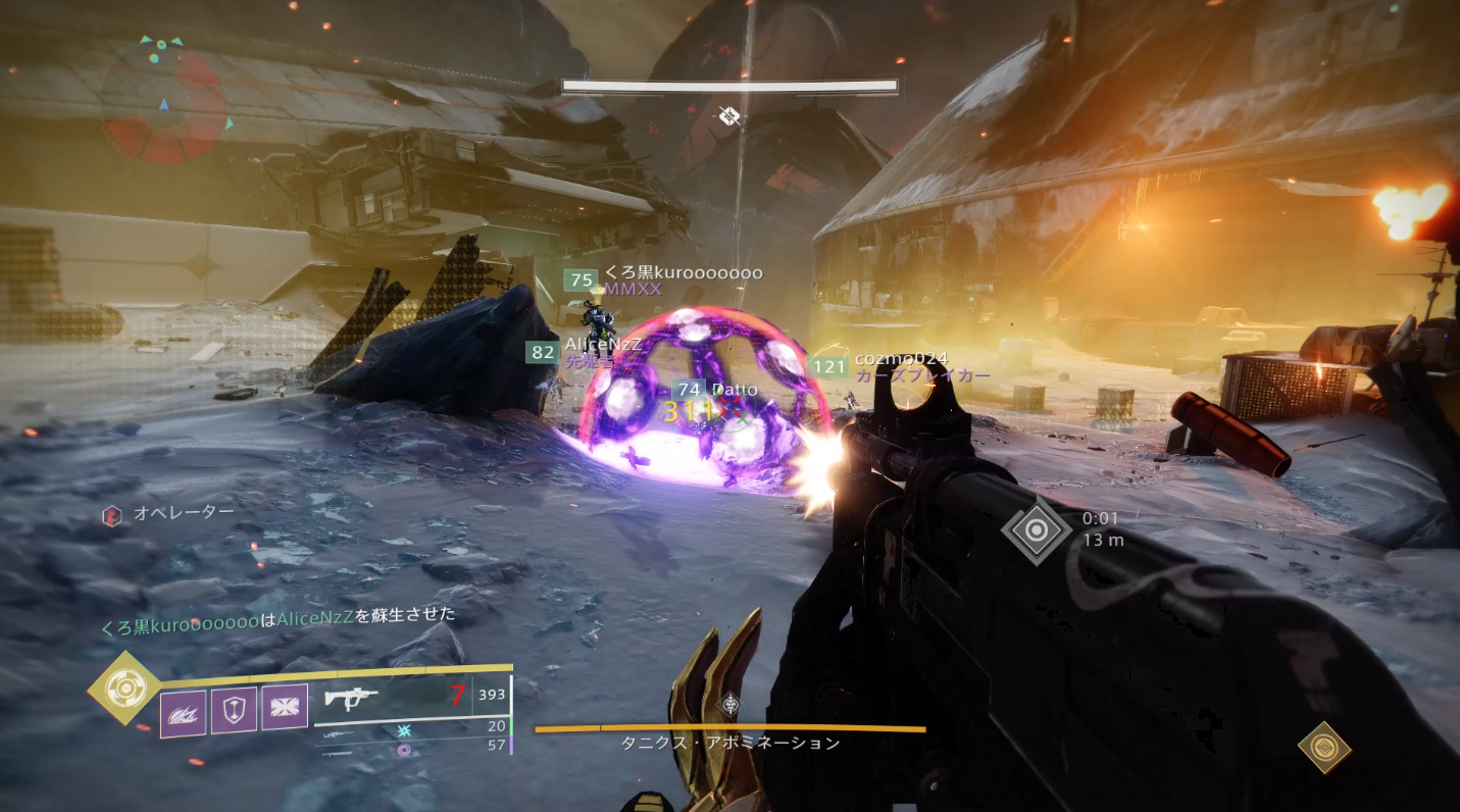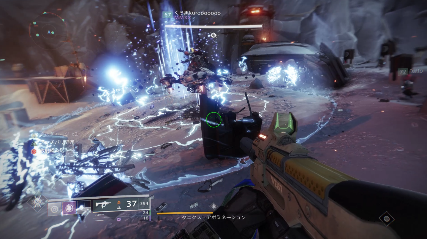 オペレーター、スキャナー、サプレッサーのバフがあります。それぞれバフを持っているバンダルを倒すとドロップします。オペレーターは核ステーションの制御盤を撃つことができ、スキャナーは核を捨てる場所を確認し、サプレッサーは3つあるセキュリティドローン(風船のようなもの)の下からタニクスを撃ち怯ませることができます。