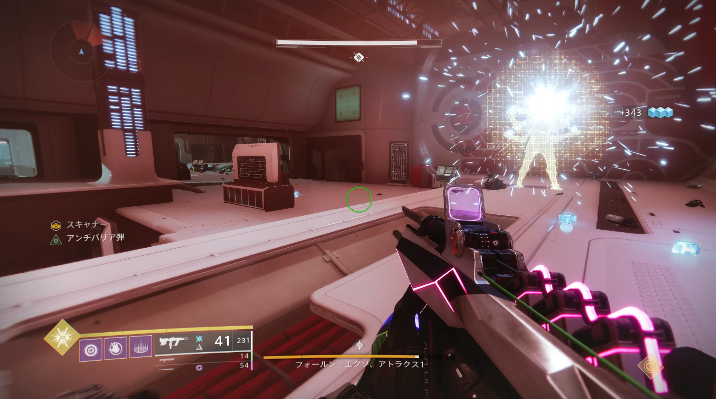 アトラクスの体力ゲージは途中で切れていてそこまで削るとDPSフェーズに入ります。DPSフェーズに入ったら全員宇宙へ行きます。スキャナーが光っているアトラクスを伝え倒しきればクリアです。