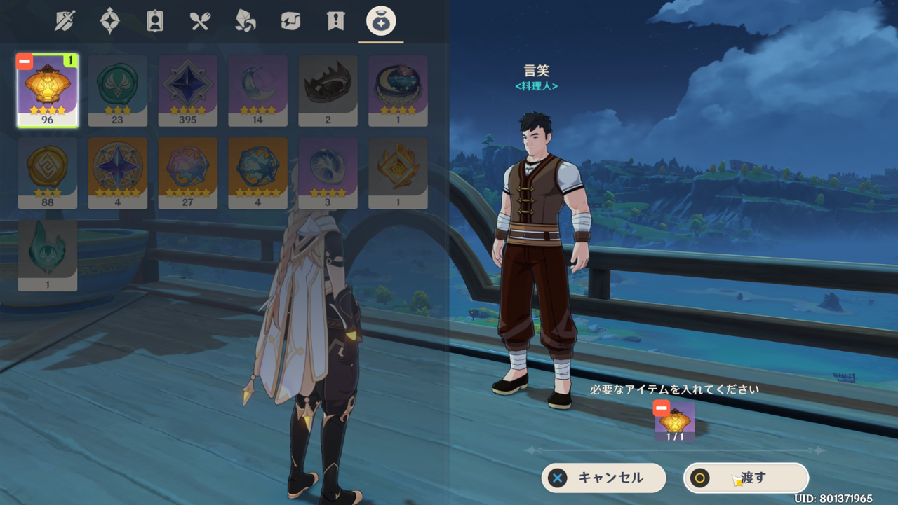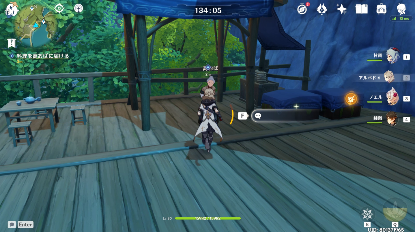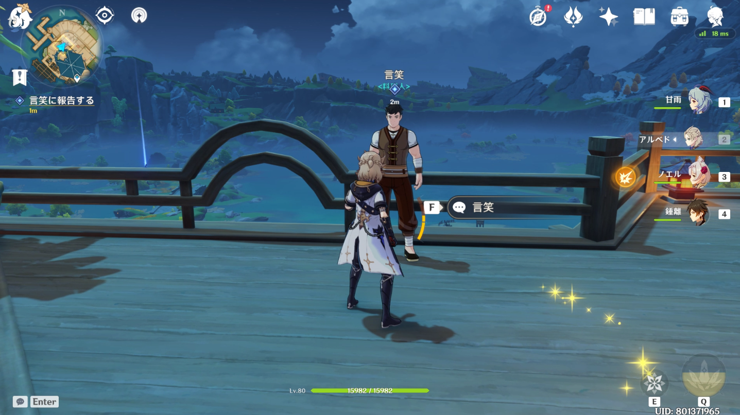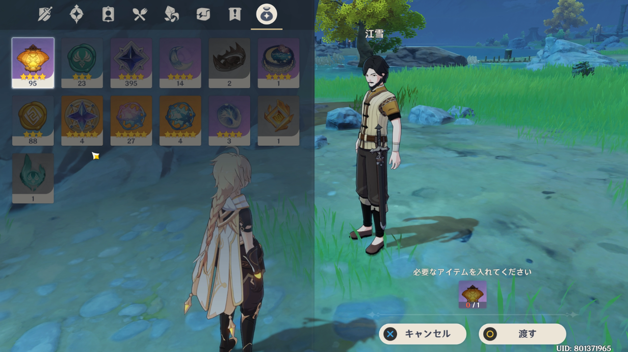 璃月港の栄発商店へ行き米、杏仁、豆腐をそれぞれ3つずつ購入します。ここでタイマーは終了するようです。
