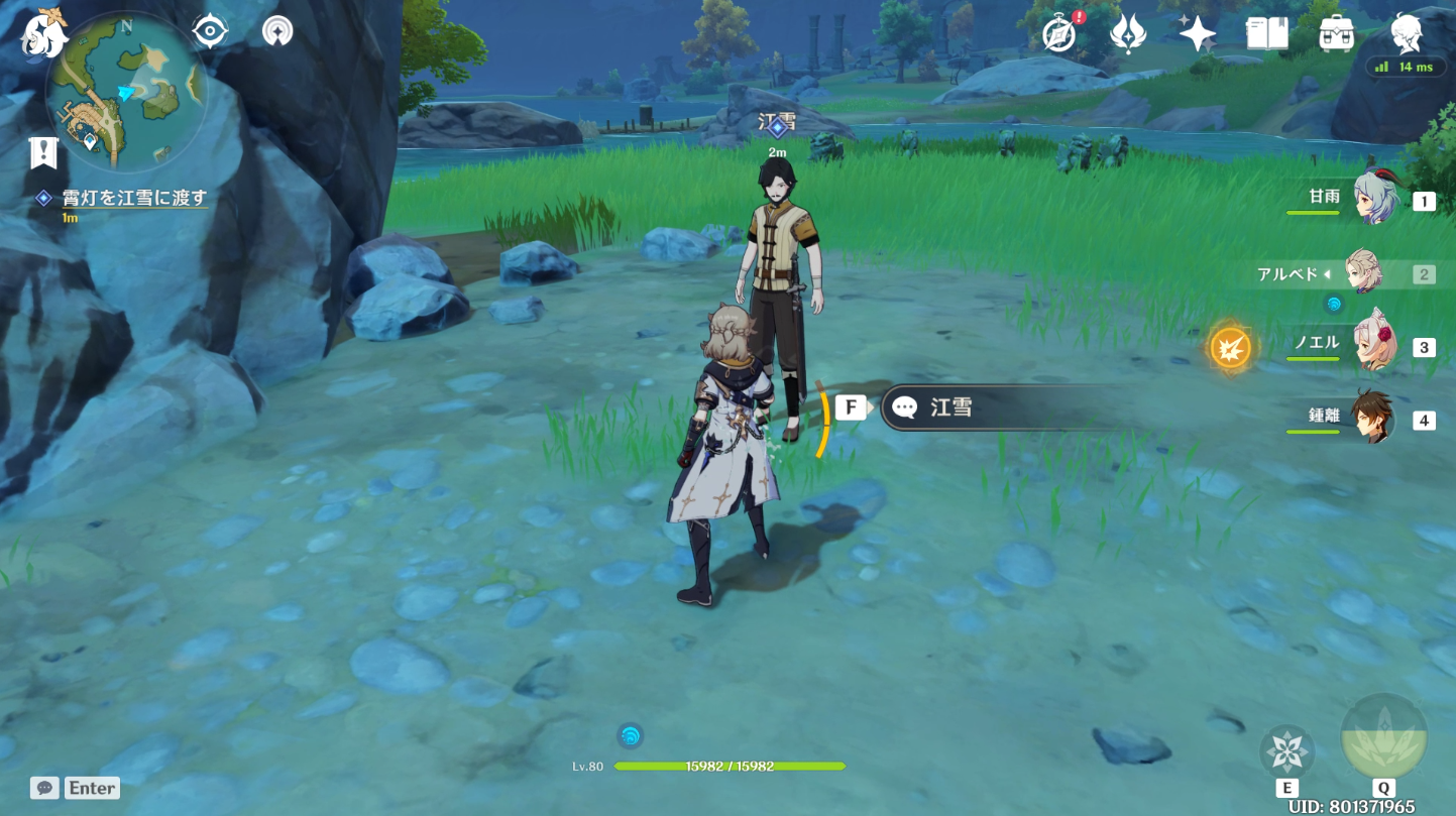 望舒旅館の北の小島にいる江雪に霄灯を渡して任務完了です。