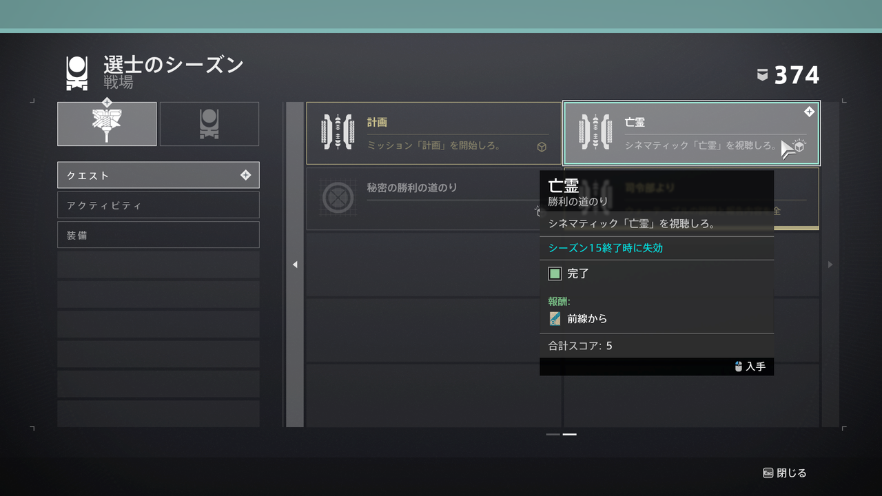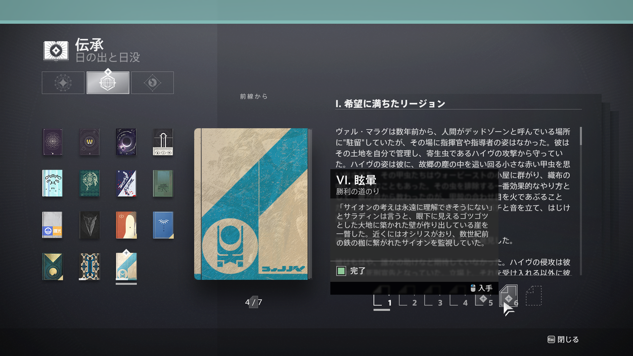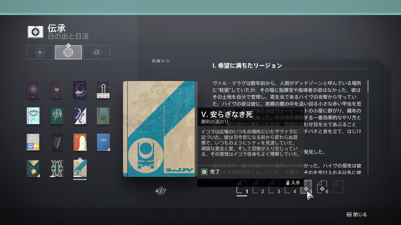 勝利の道のり「亡霊」を完了すると伝承「前線から」の「Ⅴ.安らぎなき死」、「Ⅵ.目眩」がアンロックされます。