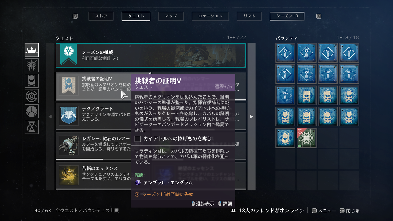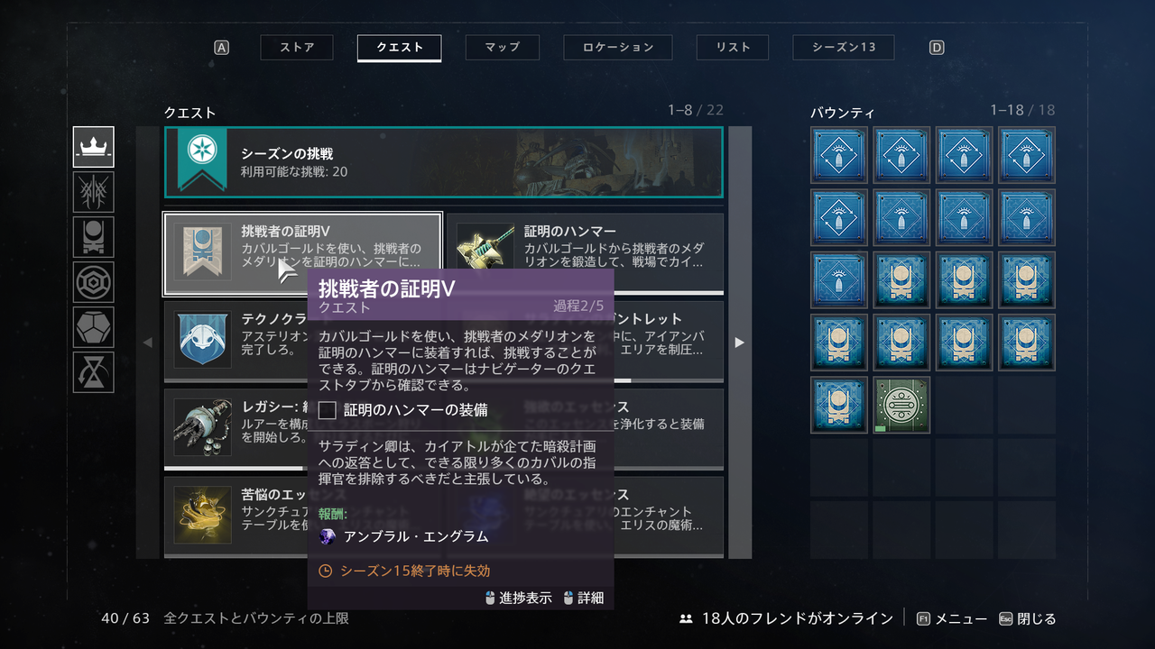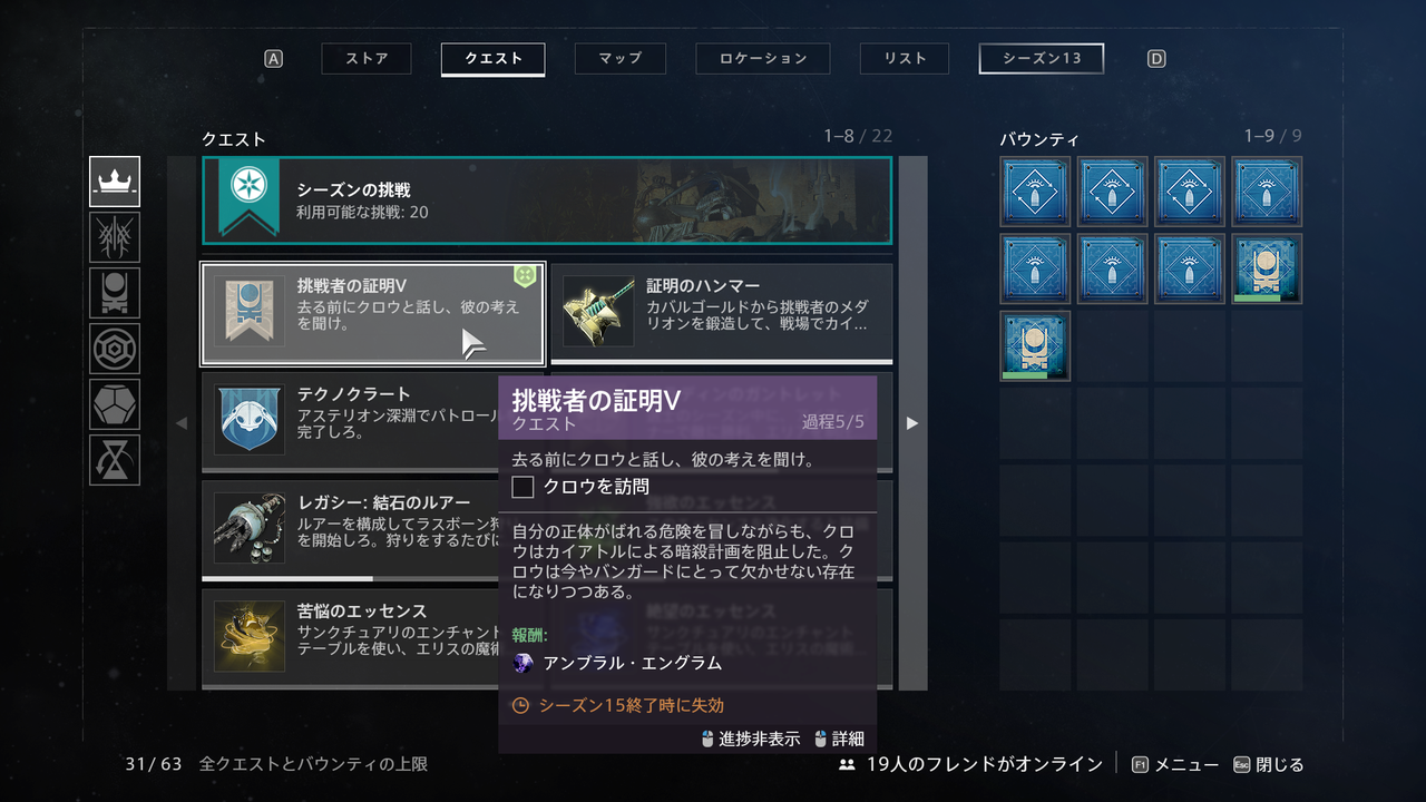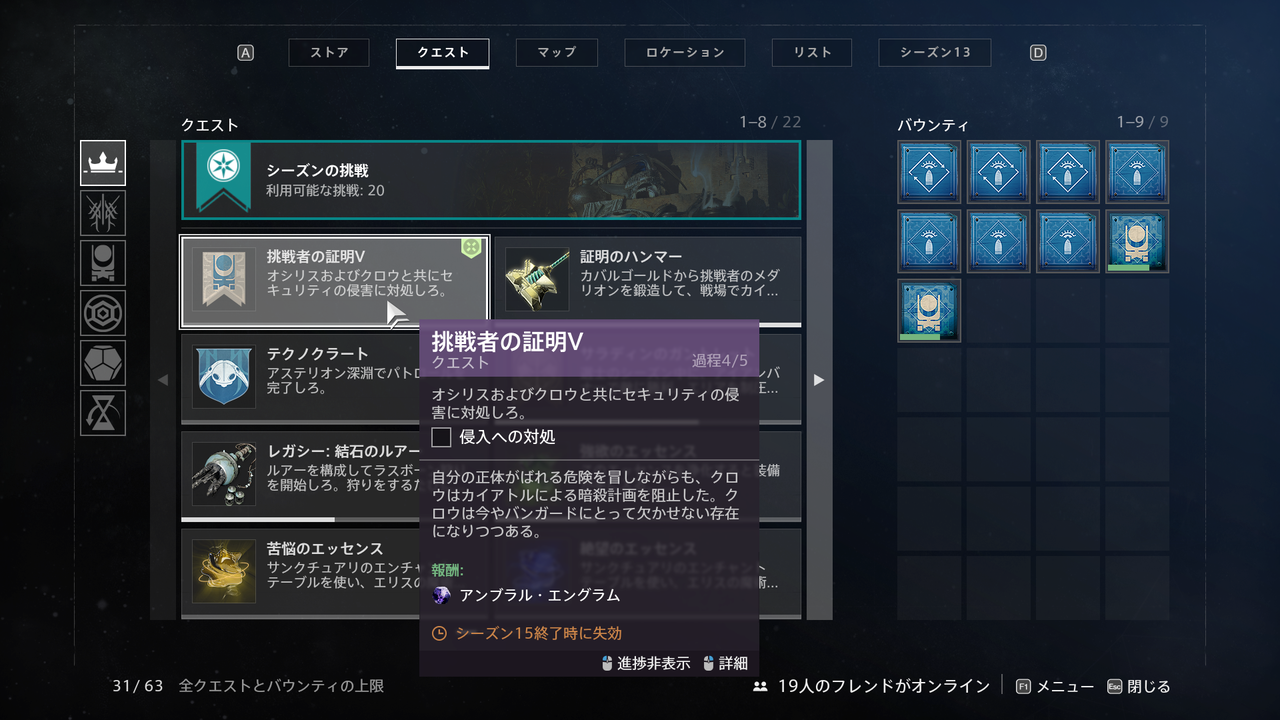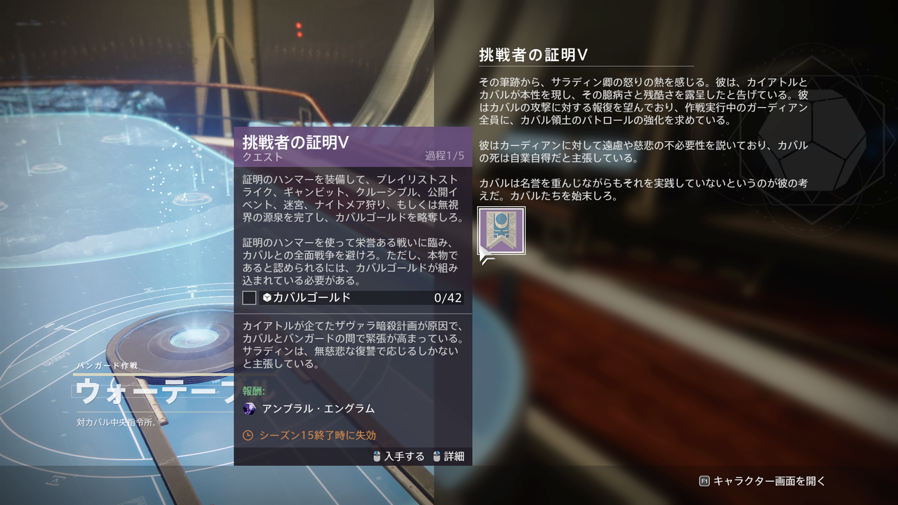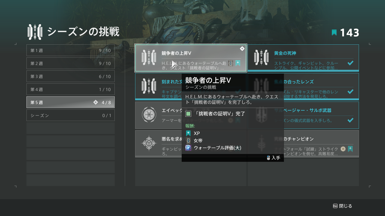 シーズンの挑戦の「挑戦者の証明Ⅴ」も完了します。