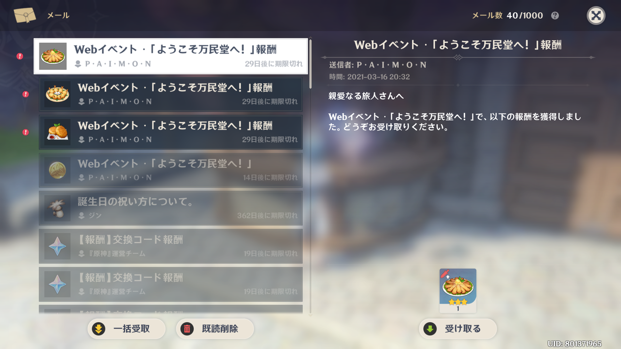 - 3つの定食報酬をすべて受け取った後も調理を続けることができます。イベント終了まで、調理に成功した料理をゲーム内メールより受け取ることができます。