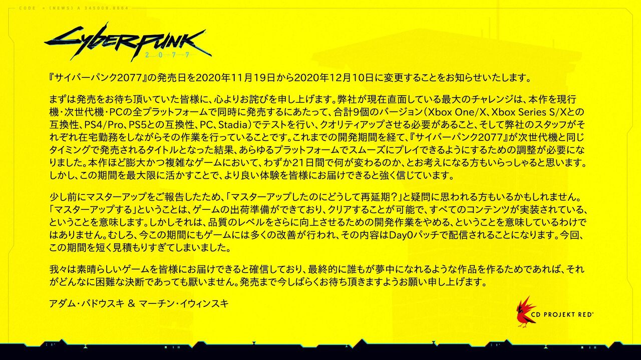 サイバーパンク2077 マスターアップ後の発売延期を発表 新たな発売日は12月10日 2020年10月28日 カテゴリ:サイバーパンク2077ニュース Follow @maruhashi084 【サイバーパンク2077 マスターアップ後の発売延期を発表 新たな発売日は12月10日】の続きを読む タグ :#サイバーパンク2077