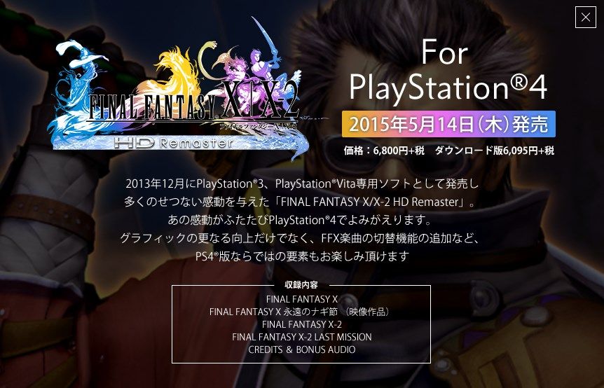 PS4版「ファイナルファンタジー10/10-2 HD リマスター」が5月14日に発売決定!新要素もあるらしい 2015年03月03日 カテゴリ:ファイナルファンタジー Follow @maruhashi084 【PS4版「ファイナルファンタジー10/10-2 HD リマスター」が5月14日に発売決定!新要素もあるらしい】の続きを読む タグ :#FF10#FF10-2#HDリマスター