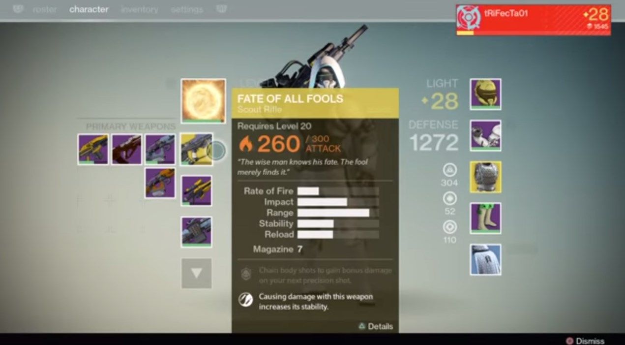 【Destiny泣ける話】現在世界に1つしか存在しないエキゾチックスカウトライフル「FATE OF ALL FOOLS」 2014年12月23日 カテゴリ:Destiny(デスティニー) Follow @maruhashi084 【【Destiny泣ける話】現在世界に1つしか存在しないエキゾチックスカウトライフル「FATE OF ALL FOOLS」】の続きを読む タグ :#Destiny#デスティニー#DLC#地下の暗黒#クルーシブル#オシリスの試練#フェイトオブオールフールズ
