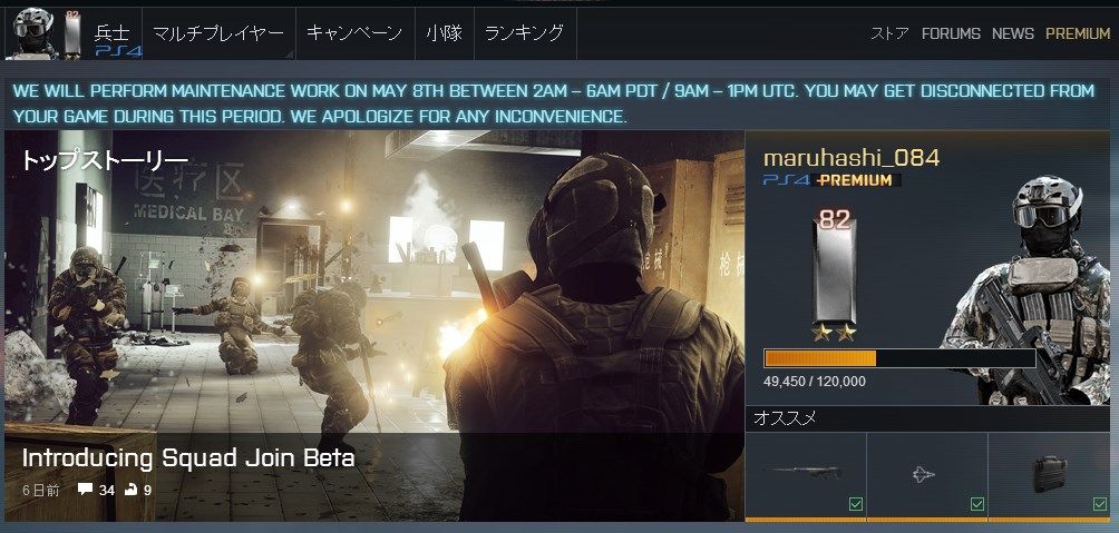 【Battlefield 4】本日5/8はメンテナンスがあるらしい 18時~21時までは切断されることもあるってさ 2014年05月08日 カテゴリ:Battlefield 4 Follow @maruhashi084 【【Battlefield 4】本日5/8はメンテナンスがあるらしい 18時~21時までは切断されることもあるってさ】の続きを読む タグ :#BF4#バトルフィールド4#メンテナンス#サーバー