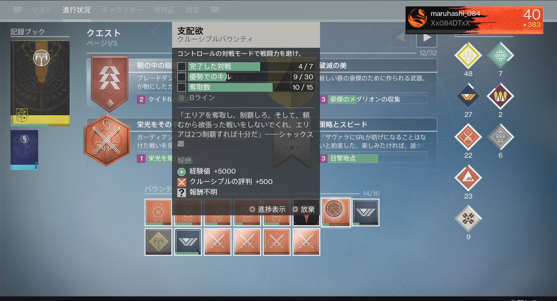 【Destiny】週間バウンティ「支配欲」の『Bライン』って何? 2016年09月28日 カテゴリ:Destiny(デスティニー) Follow @maruhashi084 【【Destiny】週間バウンティ「支配欲」の『Bライン』って何?】の続きを読む タグ :#週間バウンティ#Bライン#クルーシブル#コントロール#Destiny#デスティニー